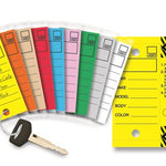 These key tags are easy to use — just fill in the information, fold over the self-protective clear adhesive laminate, and attach a key ring. They are durable, long lasting and fade-resistant. Packaged 250 per box, with key rings. Available in 9 colors.