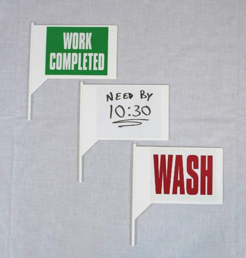White Flags fit securely in holes on top of the Roof Toppers to convey additional information. Made of durable plastic. Your choice of decals.