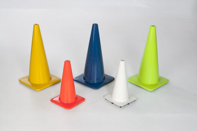 Control traffic flow with easy-to-see traffic cones. These durable cones are constructed of heavy duty PVC. Available in 5 colors: yellow, orange, blue, white and lime green. Minimum order: 10 of same color. All colors are also available in 28” height; 36" orange only.